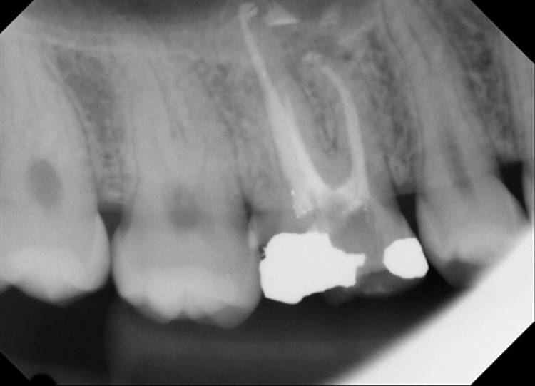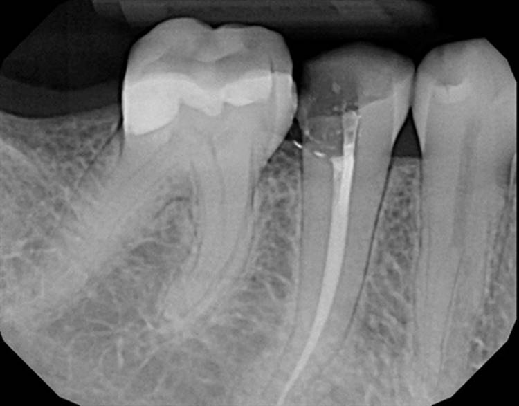 All four canals filled but DB was short. I had run out of my last obturator so I left it the way it was. I informed patient and told her that I buy all my own materials and that if it’s giving her any issues, I will re-do the root canal at no charge if gives her problems. She was very understanding about it. That was about 2 weeks ago and she’s been in a couple times since to get some fillings done. She hasn’t had any issues with chewing on it at all. Crown scheduled for the end of this month when she gets her bigger paycheck.
