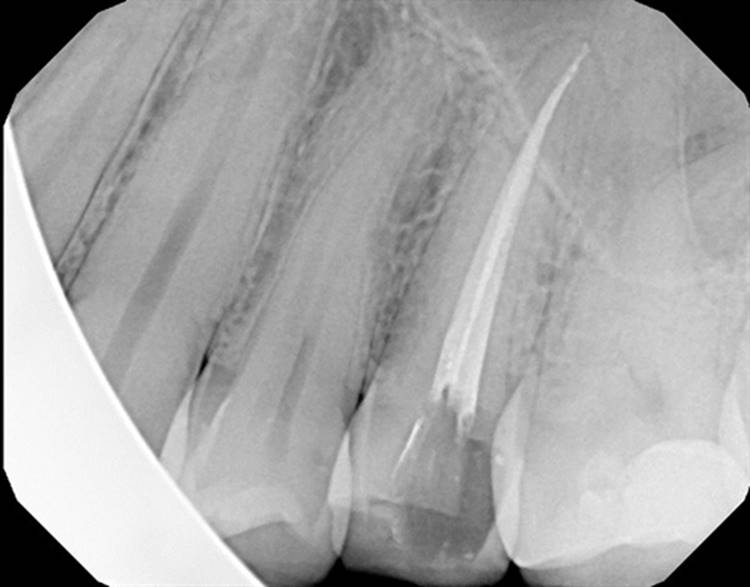 I felt like the obturator may have bound to the pulp chamber wall while filling the ML, even though it went to length. So I kept the RD clamp on to take the final x-ray. Looks good to me!