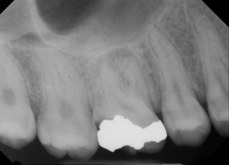 Recurrent decay on the distal leading to irreversible pulpitis. Four canals found. MB2 was a bugger to find even though she was young.